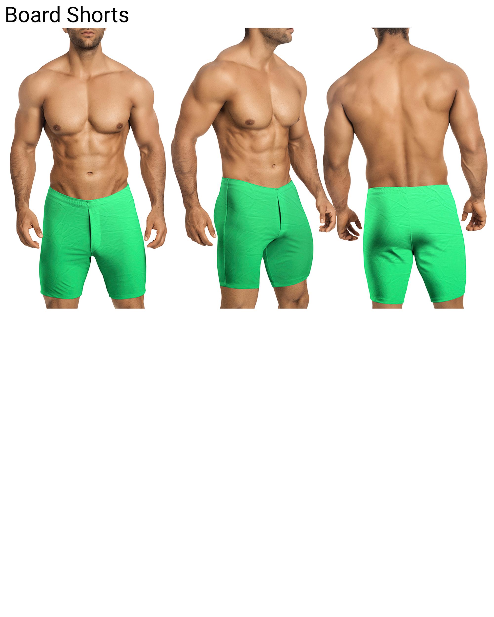 * Board Shorts. Tapered, cut just above the knee. Side seam 16.5"